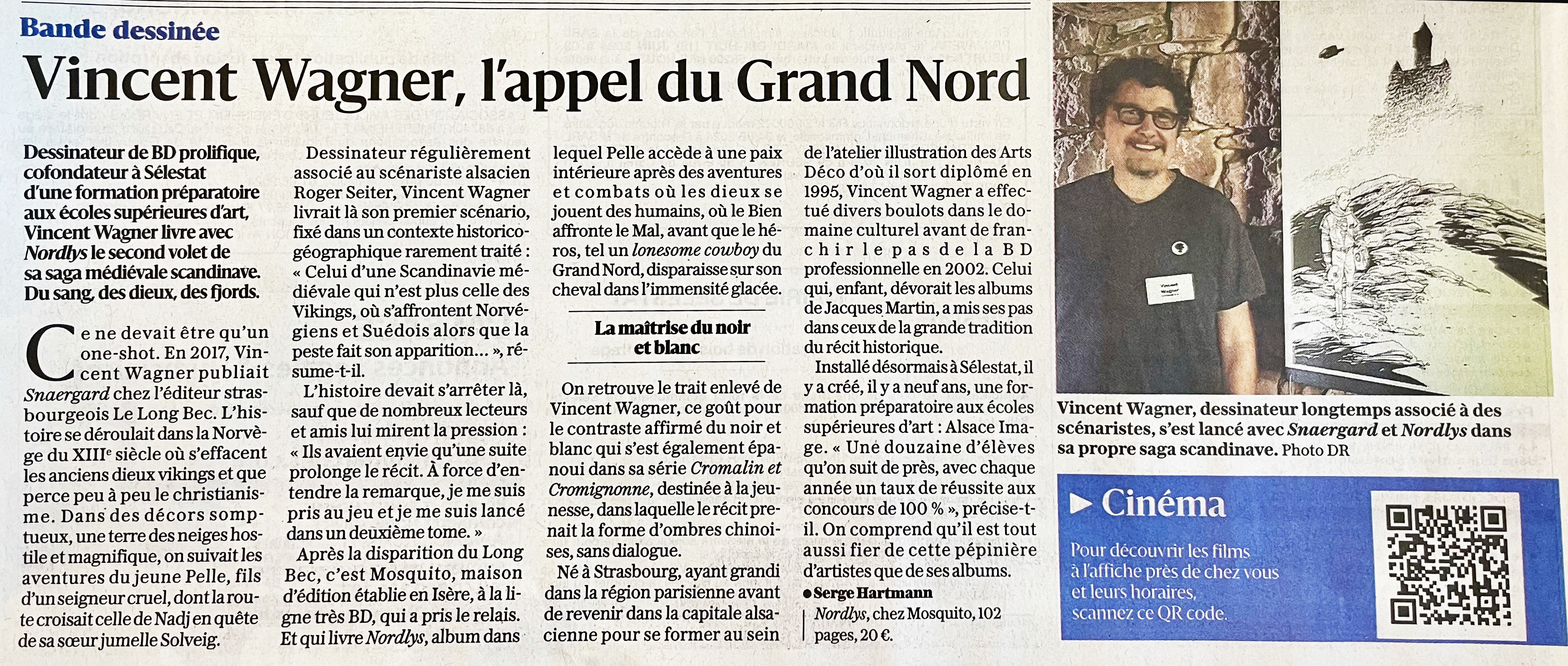 Snaergard NED juin 2022 Editions Mosquito 180 pages Ado-adultes Norvège, 13ème siècle. Pelle, fils d'un seigneur de guerre très puissant, fuit le château paternel après avoir volé des parchemins. Le début d'un long périple depuis les fjords déchiquetés jusqu'aux confins du Royaume de Suède. Un récit médiéval nordique dans la lignée des grandes sagas viking Prix du Public les 1000 Bulles 2025 Festival Montreuil-Bellay La 1ère édition, aux Editions du Long Bec, est disponible d'occasion ![]() Sélection Prix Jacarbo 2018 Sélection Prix des lycéens la BD est dans la presse 2018 |