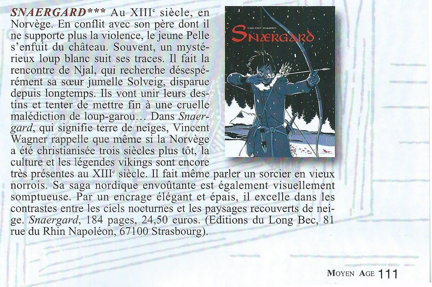 ![]() Snaergard vu par : - Bdzoom - Casemate - Les DNA - Les dossiers de la BD - littérature blogspot - La Revue Moyen âge - sceneario.com - Sentiers de l'imaginaire - Overblog chronique musicale - Zoo le mag - Bibliothèque Nationale de France (BNF) |