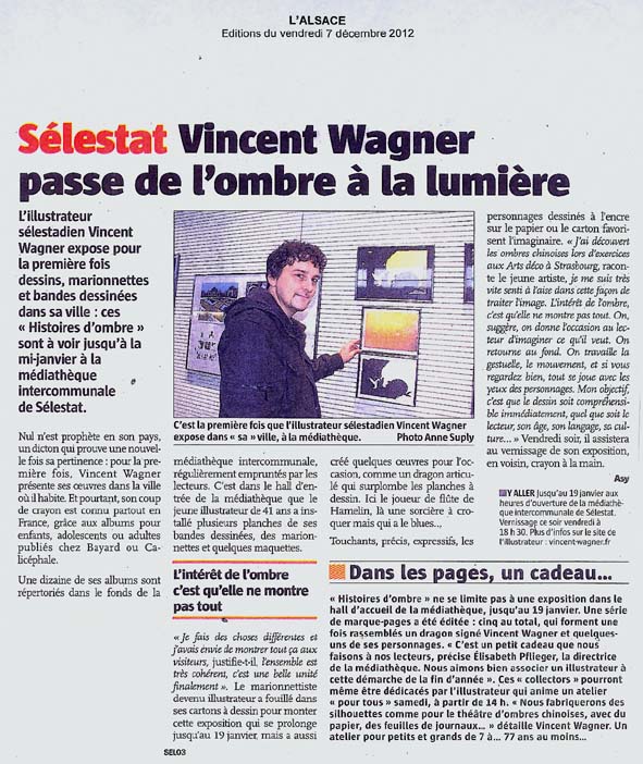 | Exposition Histoires d'ombre, Médiathèque de Sélestat décembre 2012 / janvier 2013 | |